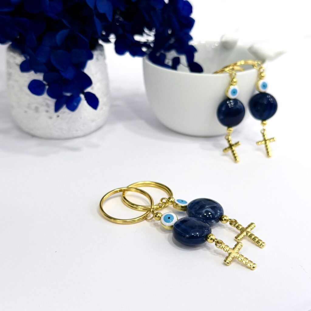 Μπρελόκ με ματάκι και σταυρό 24Κ.