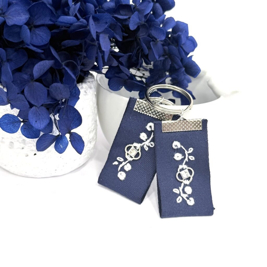 Μπρελόκ με χειροποίητο κέντημα και επάργυρο σταυρό.