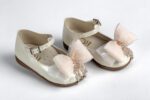Μπαλαρίνα περπατήματος σε εκρού δέρμα διακοσμημένη με σομόν φιόγκο.