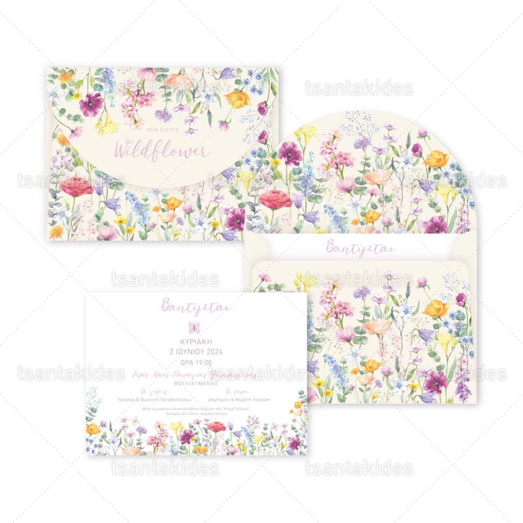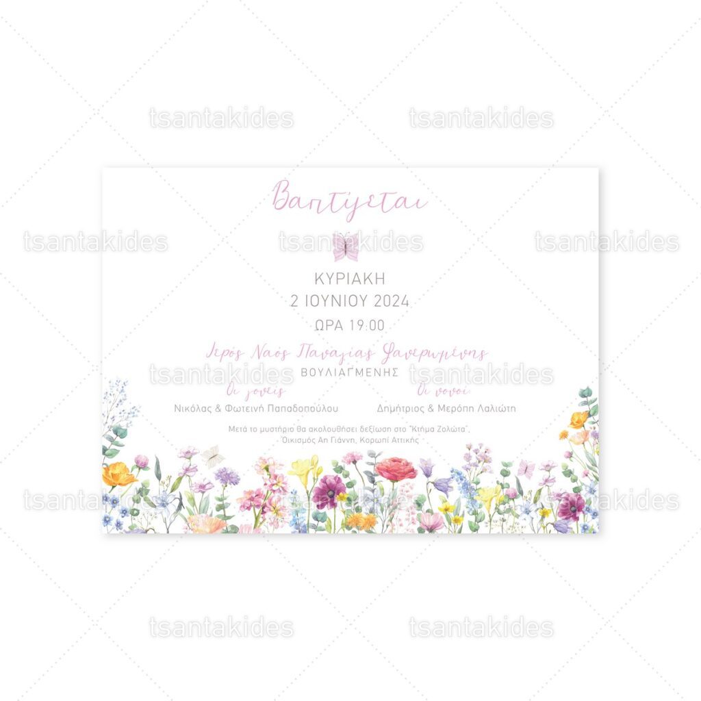 1888 Νο116Κ Προσκλητήριο βάπτισης για κορίτσι με θέμα το αγριολούλουδο