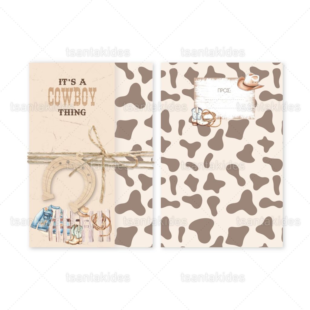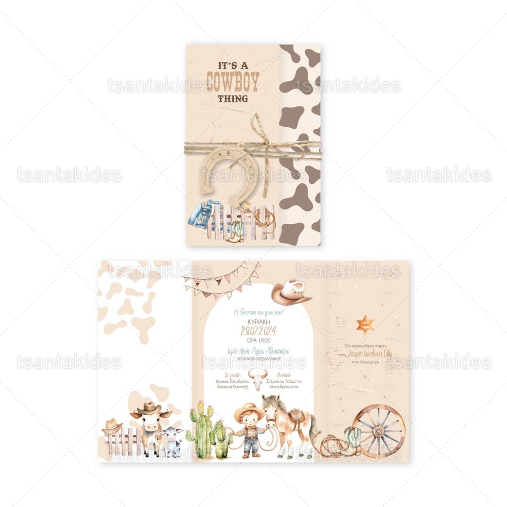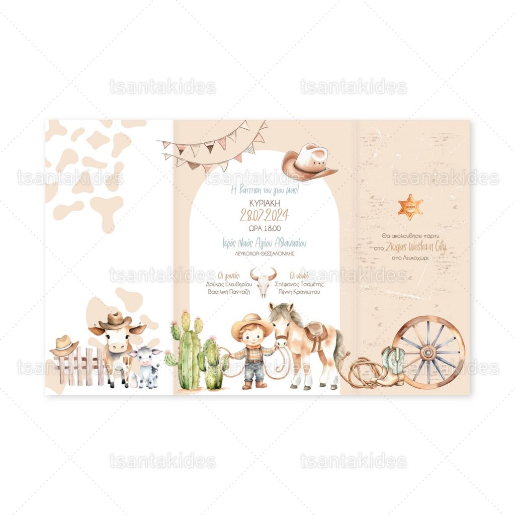 1892 3Π15 Προσκλητήριο βάπτισης για αγόρι με θέμα cowboy