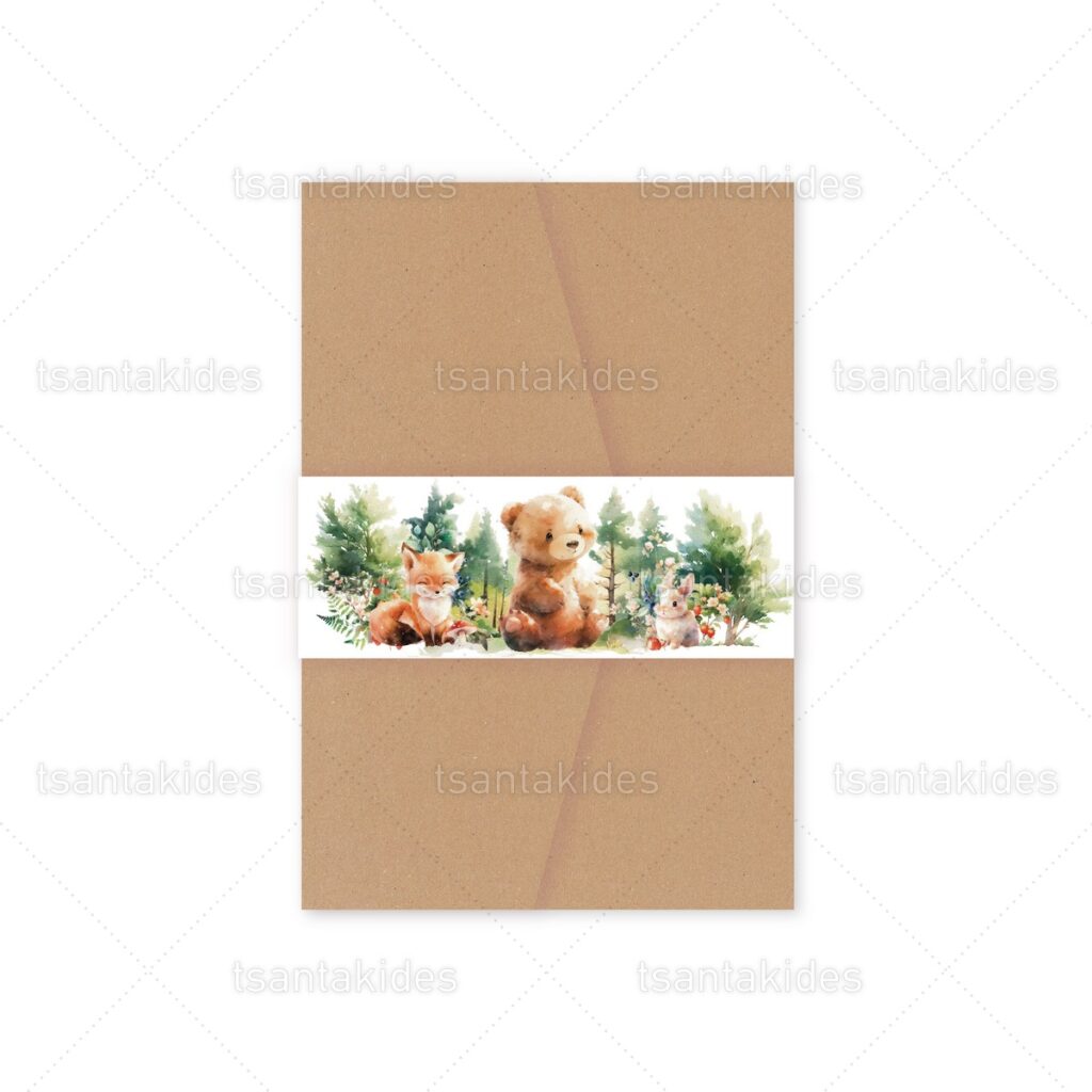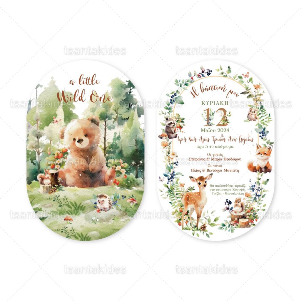 1895 Νο103Κ-ΚΛ073 Προσκλητήριο βάπτισης για αγόρι με θέμα τα ζωάκια του δάσους