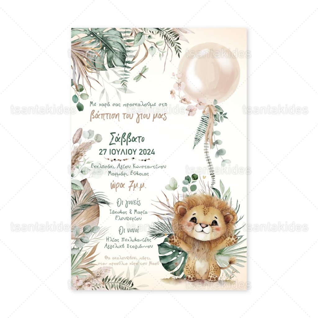 1897 Νο119Κ Προσκλητήριο βάπτισης για αγόρι με θέμα το λιοντάρι