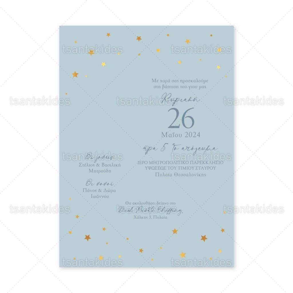 1903 ΚΛ081 Προσκλητήριο βάπτισης για αγόρι με θέμα το φεγγάρι