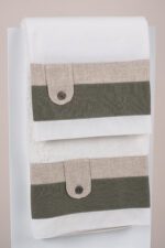 Για τους λάτρεις των Παστέλ αποχρώσεων αυτό το σετ λαδόπανων είναι το καταλλήλότερο. Σε λευκή Βαμβακερή απόχρωση διακοσμημένο απο τρέσες χρωμάτος μπεζ και σιέλ μελανζέ. Ολες οι πετσέτες της Lina Baby φέρουν την ετικέτα STANDARD 100 by OEKO-TEX® (Αυτό σημαίνει ότι τα προϊόντα δεν περιέχουν επιβλαβή επίπεδα χημικών ουσιών.)       Το σετ περιλαμβάνει, πετσέτα μεγάλη, λαδόπανο, μικρή πετσέτα και εσώρουχα. • Πετσέτα 100% βαμβακερή διαστάσεων 70*140*400g. OEKO-TEX STANDARD 100 • Πετσέτα παπά 100% βαμβακερή διαστάσεων ραμμένη 30×50 Υπάρχει η δυνατότητα γραφής του ονόματος του παιδιού με κέντημα, ίδιων αποχρώσεων με το λαδόπανο με έξτρα χρέωση. Με κέντημα ενός ονόματος +20ευρώ. Με κέντημα δύο ονομάτων +30ευρω.
