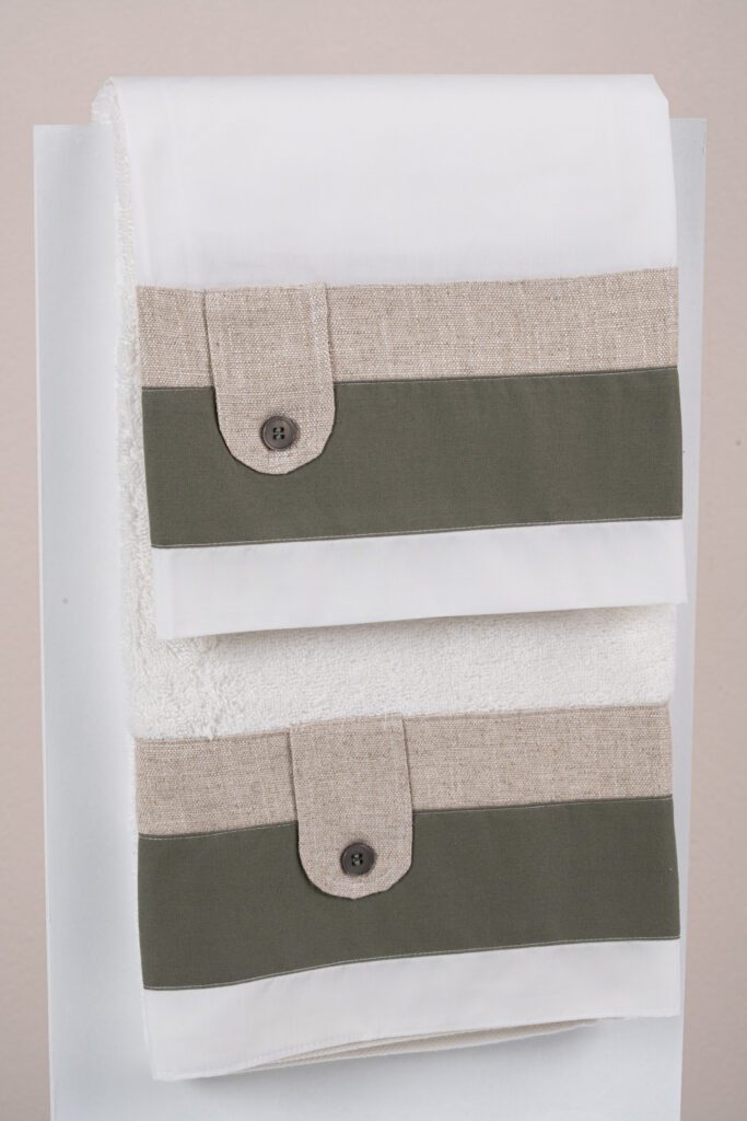 Λαδόπανα βάπτισης Νόρα | Nora από την εταιρία Lina Baby Βαμβακερό σετ λαδόπανου σε τρία χρώματα λευκό, ιβουαρ και εκρου- σάπιο μήλο, με διακοσμητική τρέσα broderies anglais λευκό, εκρού ή σαπιο μήλο αντίστοιχα και χειροποίητο λουλούδι από ύφασμα με φτερά. Το σετ περιλαμβάνει, πετσέτα μεγάλη, λαδόπανο, μικρή πετσέτα και εσώρουχα. • Πετσέτα 100% βαμβακερή διαστάσεων 90*140*450g. OEKO-TEX STANDARD 100 • Πετσέτα παπά 100% βαμβακερή διαστάσεων ραμμένη 30×50 Υπάρχει η δυνατότητα γραφής του ονόματος του παιδιού με κέντημα, ίδιων αποχρώσεων με το λαδόπανο με έξτρα χρέωση. Με κέντημα ενός ονόματος +20ευρώ. Με κέντημα δύο ονομάτων +30ευρω.