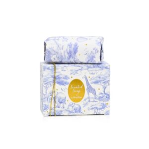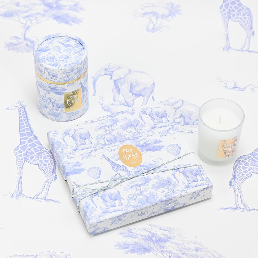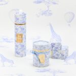 Η συσκευασία του, εμπνευσμένη από το αγαπημένο toile de jouy, ντυμένη με γαλάζια ελεφαντάκια, καμηλοπαρδάλεις και balloon motifs, δημιουργεί μια ολόκληρη ιστορία πάνω στην επιφάνεια του κουτιού. Το design αποπνέει ρομαντισμό και παιδική ανεμελιά, ενώ οι χρυσές λεπτομέρειες προσθέτουν μια διακριτική πολυτέλεια που το κάνει ιδανικό και για δώρο.