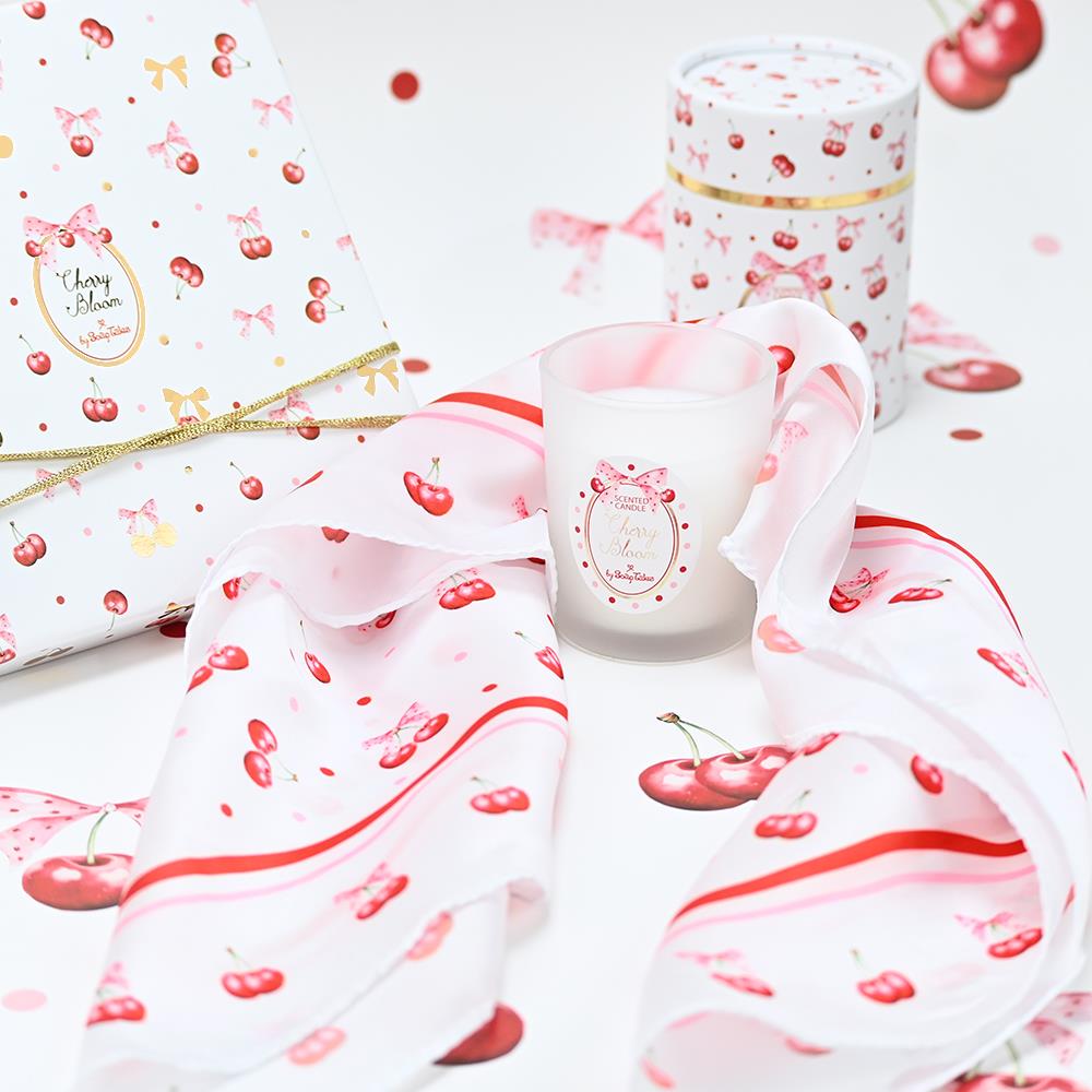 Το scrunchie με μαντίλι από τη σειρά Cherry Bloom συνδυάζει ρομαντισμό και φρεσκάδα, χαρίζοντας χρώμα και στυλ σε κάθε σας εμφάνιση.