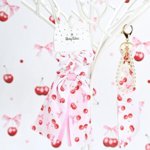 Ένα ξεχωριστό charm με μαντιλάκι σε μοτίβο κερασιών, διακοσμημένο με πέρλες και μεταλλικό λουλουδάκι, που συνδυάζει φρεσκάδα και φινέτσα.