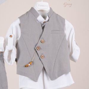 Βαπτιστικό κοστούμι Piccolino Enrique σε χρώμα Off White. Περιλαμβάνει λινό γιλέκο με μύτη ξύλινα κουμπιά και διακοσμητικό κρεμαστό με χάντρες, πουκάμισο λινό με γιακά μαο, παντελόνι λινό σε χρώμα off white, ζωνάκι με double D δέσιμο και καπέλο με φάσα. Διαθέσιμο σε 4 μεγέθη 6-12, 12-18, 18-24, 24-36(εξτρά χρέωση) Επωθεληθείτε την προσφοράς μας και δημιουργήστε ένα ολοκληρωμένο πακέτο βάπτισης που περιλαμβάνει