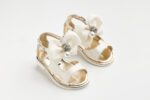 KE15 (19 – 27) Σανδάλι περπατήματος σε εκρού δέρμα με φιογκο από εκρού σατεν και τούλι με στρας