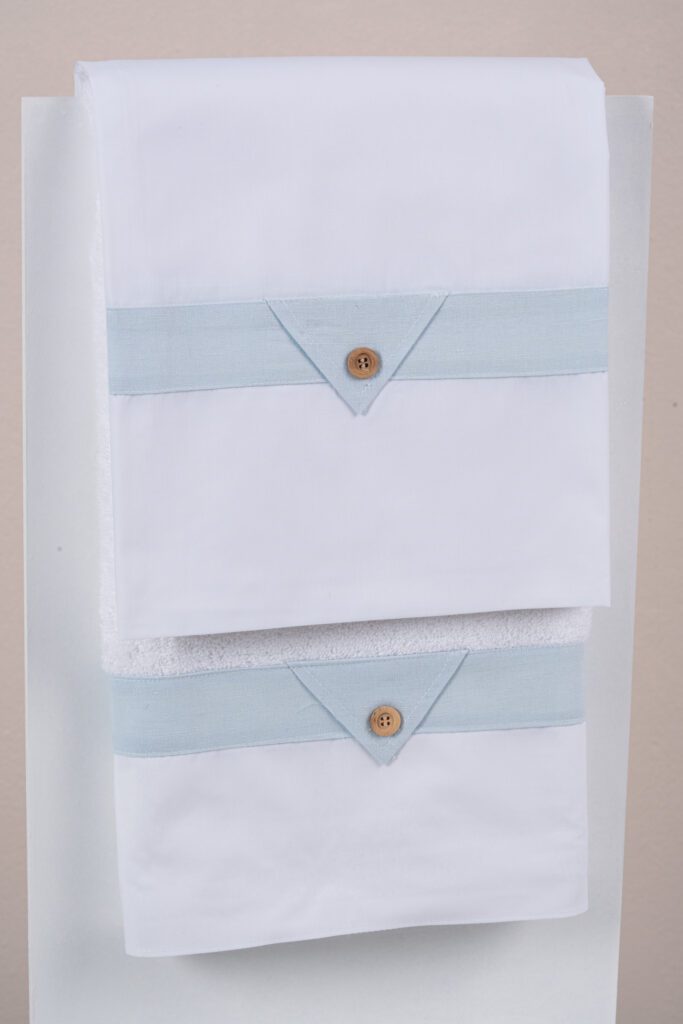 Λαδόπανα βάπτισης Φαίδων |phaedon από την εταιρία Lina Baby Απλό και κομψό βαμβακερό σετ  λαδόπανων σε λευκό χρώμα με πικέ τρεσα και διακοσμητικά χαντράκια σε λευκό και σιέλ χρώμα.  Το σετ περιλαμβάνει, πετσέτα μεγάλη, λαδόπανο, μικρή πετσέτα και εσώρουχα. • Πετσέτα 100% βαμβακερή διαστάσεων 90*140*450g. OEKO-TEX STANDARD 100 • Πετσέτα παπά 100% βαμβακερή διαστάσεων ραμμένη 30×50 Υπάρχει η δυνατότητα γραφής του ονόματος του παιδιού με κέντημα, ίδιων αποχρώσεων με το λαδόπανο με έξτρα χρέωση. Με κέντημα ενός ονόματος +20ευρώ. Με κέντημα δύο ονομάτων +30ευρω.
