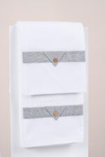 Λαδόπανα βάπτισης Πουγκί με Mακό |Cotton Pouch από την εταιρία Lina Baby Βαμβακερό σετ  Λαδόπανου σε λευκό χρώμα  με διακοσμητική φάσα υφάσματος που "έξυπνα" αγκαλιάζει την πετσέτα δημιουργόντας ένα άτυπο πουγκάκι. Η πετσέτα ενσωματώνεται με το λαδόπανο με υπέροχα ξύλινα κουμπιά. Τα εσώρουxα του Λαδόπανου ειναι απο βαμβακερό soft Jersey, με εναν σχεδιασμό μοντέρνο, μποξεράκι, T-shirt & υπέροχο τρίγωνο καπέλο ολοκληρωνουν το σετ.      • Πετσέτα 100% βαμβακερή διαστάσεων 90*140*450g. OEKO-TEX STANDARD 100 • Πετσέτα παπά 100% βαμβακερή διαστάσεων ραμμένη 30×50 Υπάρχει η δυνατότητα γραφής του ονόματος του παιδιού με κέντημα, ίδιων αποχρώσεων με το λαδόπανο με έξτρα χρέωση. Με κέντημα ενός ονόματος +20ευρώ. Με κέντημα δύο ονομάτων +30ευρω.