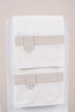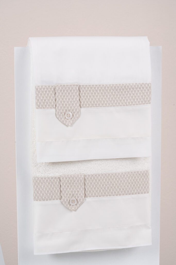 Λαδόπανα βάπτισης  Αλέξανδρος | Alex από την εταιρία Lina Baby Μοντέρνο Βαμβακερό σετ λαδόπανων σε λευκό χρώμα με διακοσμητικές τρέσες σε μπεζ, γκρι και κουμπάκια δίχρωμα. Ολες οι πετσέτες της Lina Baby φέρουν την ετικέτα STANDARD 100 by OEKO-TEX® (Αυτό σημαίνει ότι τα προϊόντα δεν περιέχουν επιβλαβή επίπεδα χημικών ουσιών.) Το σετ περιλαμβάνει, πετσέτα μεγάλη, λαδόπανο, μικρή πετσέτα και εσώρουχα. • Πετσέτα 100% βαμβακερή διαστάσεων 70*140*400g. OEKO-TEX STANDARD 100. • Πετσέτα παπά 100% βαμβακερή διαστάσεων ραμμένη 30×50 Υπάρχει η δυνατότητα γραφής του ονόματος του παιδιού με κέντημα, ίδιων αποχρώσεων με το λαδόπανο με έξτρα χρέωση. Με κέντημα ενός ονόματος +20ευρώ. Με κέντημα δύο ονομάτων +30ευρω.
