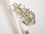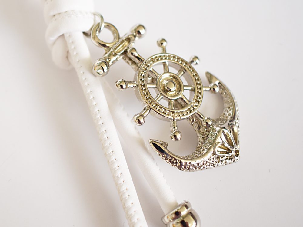 Μοναδική πολυτελής μπομπονιέρα γάμου και βάπτισης της εταιρίας Δημητρέση, μεταλλική άγκυρα σε μπρελόκ και δεμένη με λευκό δερματινο κορδόνι από εξαιρετικής ποιότητας μέταλλο.