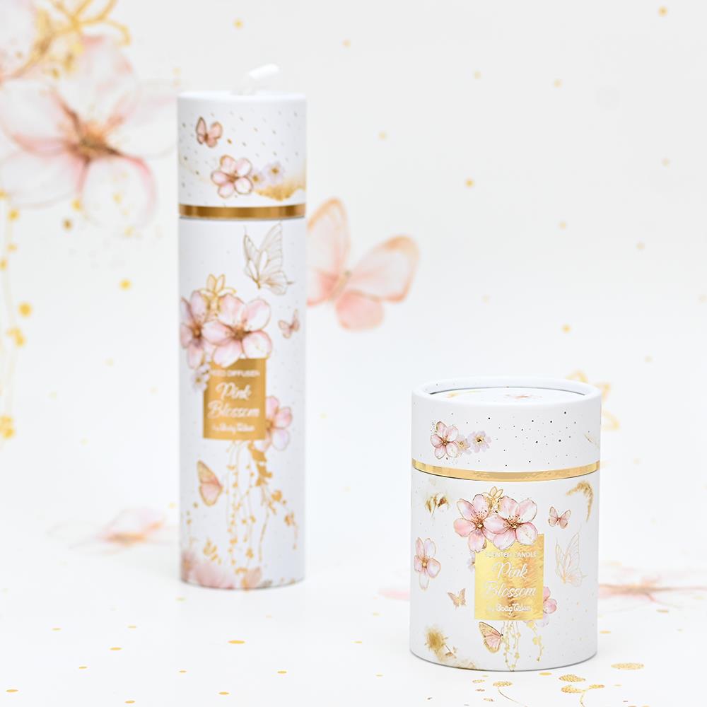Η συσκευασία, με απαλές ροζ αποχρώσεις, χρυσές λεπτομέρειες και ονειρικά ανθάκια, χαρίζει στο προϊόν μια κομψή, θηλυκή παρουσία που ξεχωρίζει σε κάθε χώρο.
