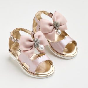 KE16 (19 - 27) Σανδάλι περπατήματος σε dusty pink δέρμα με φιόγκο από σατέν και τούλι με στρας