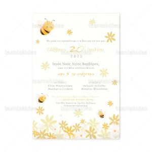 Προσκλητήριο βάπτισης για αγόρι εκτυπωμένο με θέμα Honey Bee