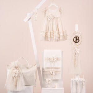 • Λαδόπανα βάπτισης σεταρισμένα με το φόρεμα LK-CATALINA IVORY .